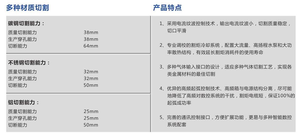 优异的高频起弧控制技术、高频箱与电源结构分离,尽可能地降低了高频对数控系统的干扰,割炬电缆短,确保起弧成功率